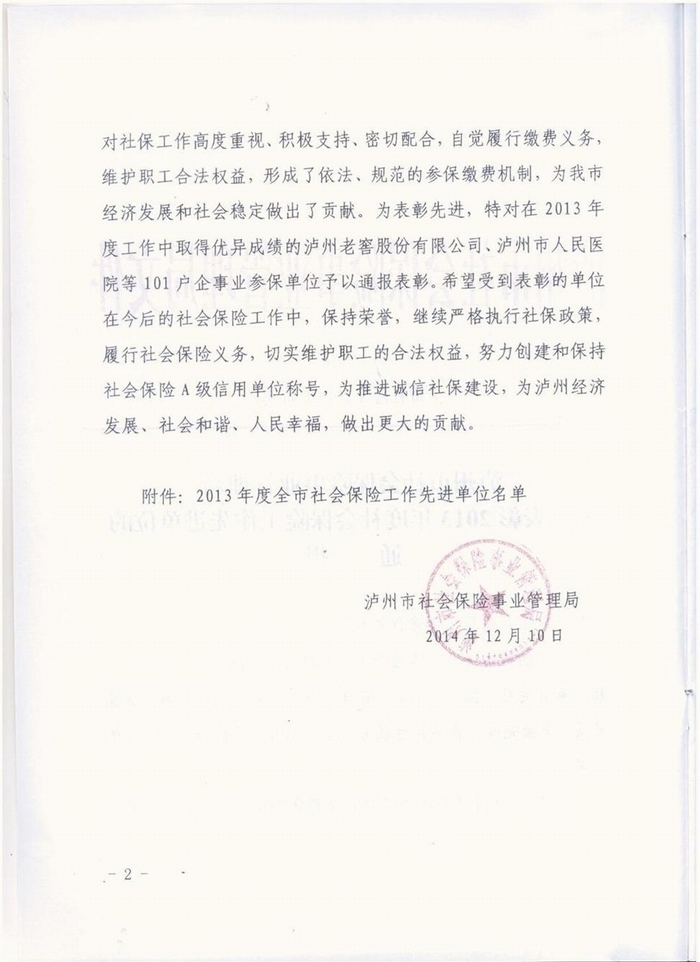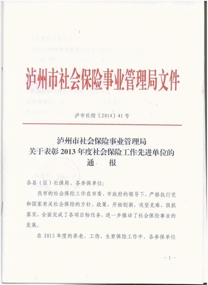 2014年社保表彰通報(bào)